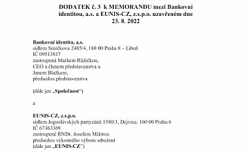 Prodlouženo memorandum mezi EUNIS-CZ a společností Bankovní identita, a.s.